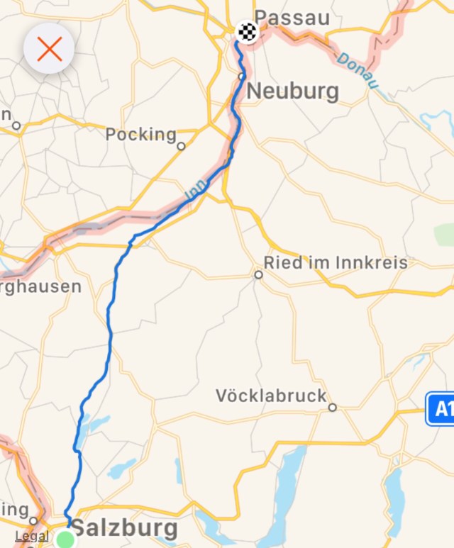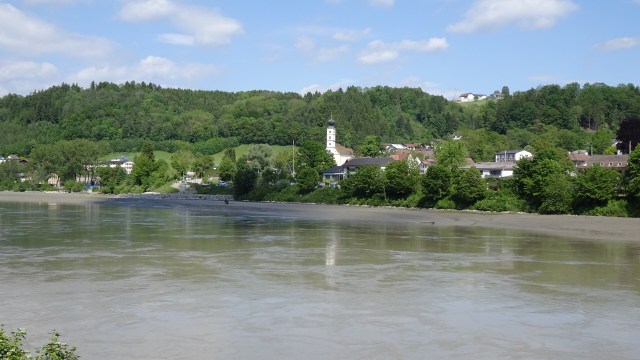 The village on the German side is Neuhaus am Inn. You can see the bridge we had just crossed. Note how muddy the waters are too. The river levels are high.