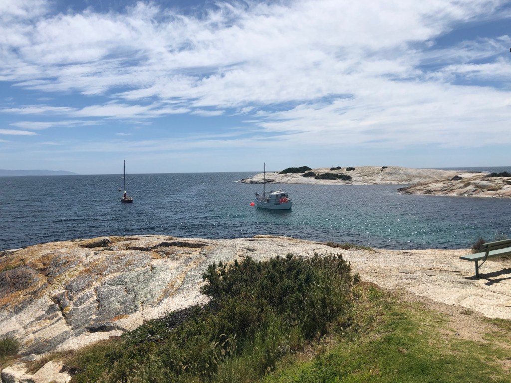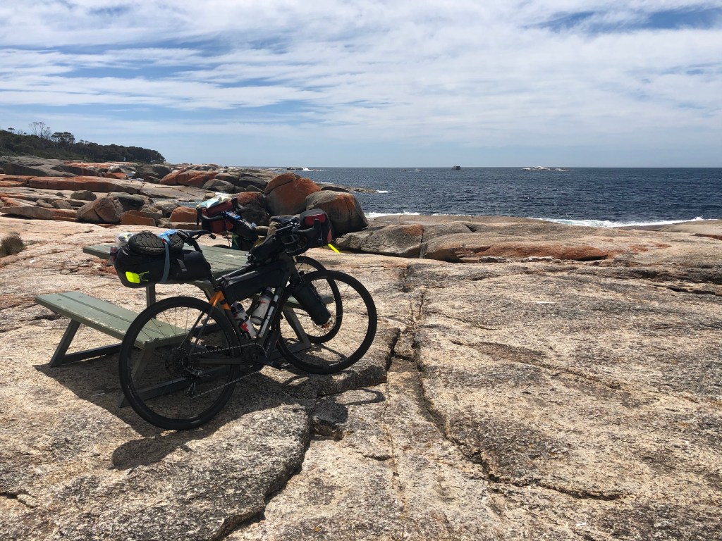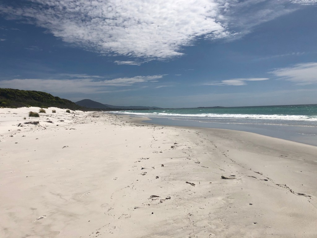 Today was shorter, a mere 60 km with around 500 metres climbing. The views for the first half was beach after beach, with the omnipresent Hazards and later, Maria Island.