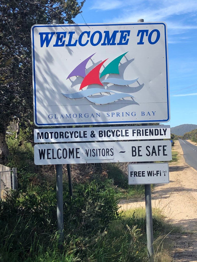 The Highway is quiet here. Traffic overall was not too bad today with one major exception. One idiot driver of a red convertible Mercedes, registration starting with MHH…I was hoping we might see the car in Triabunna or Orford so we could have a chat! He came within inches passing us, making no attempt to leave a 1.5 metre gap.
